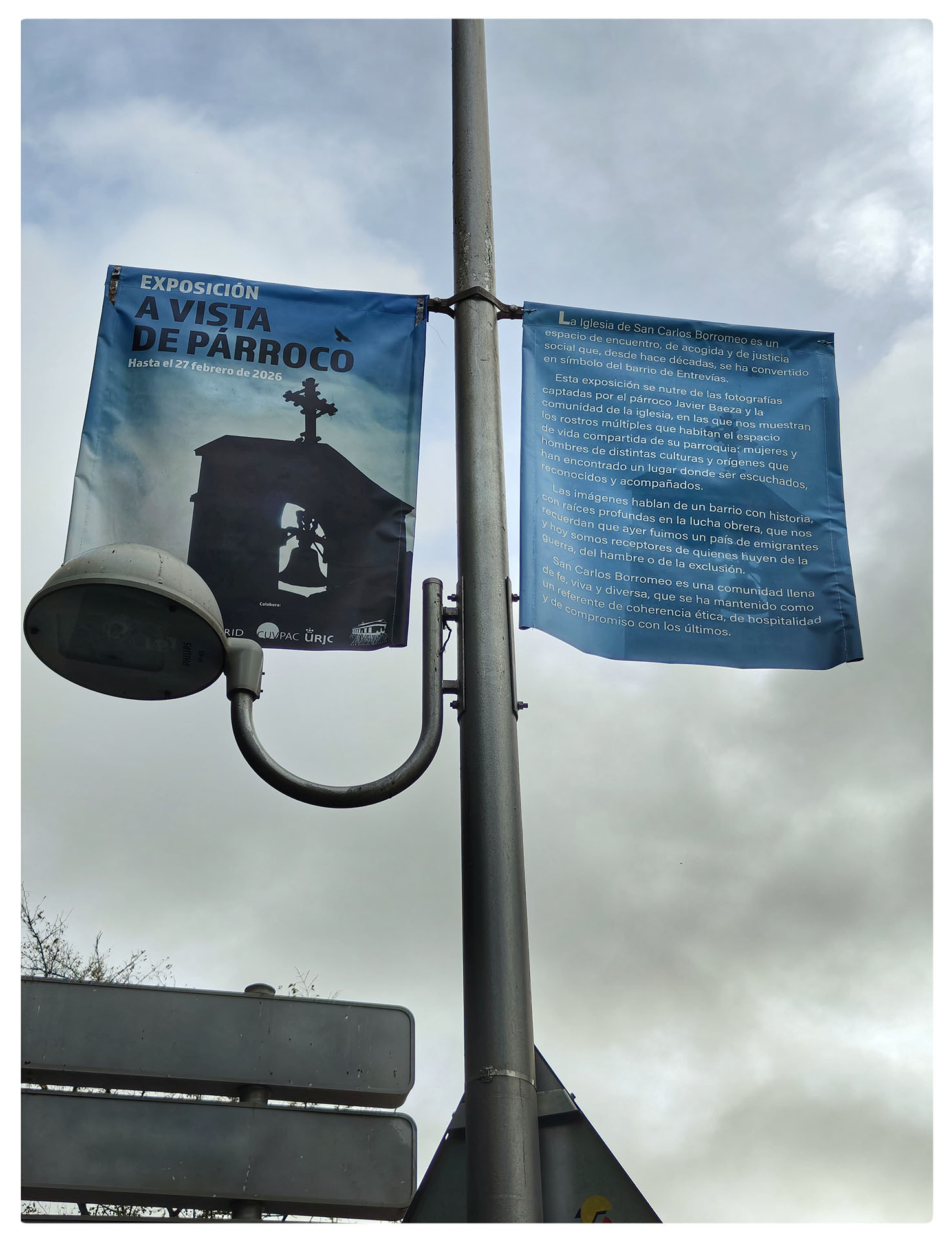 En estas imágenes habita la vida: la liturgia popular y la protesta, la infancia y la vejez, la exclusión y la esperanza. No son solo documentos, son gestos de memoria y de ternura; un ejercicio de mirada que desvela lo que a menudo se oculta tras los titulares o los prejuicios. “A vista de párroco” no muestra un barrio idealizado, sino real: vulnerable y combativo, herido y hermoso. Es, también, un homenaje a la comunidad que se articula en torno a San Carlos Borromeo, y una invitación a mirar —con los ojos abiertos y el corazón implicado— la fuerza de lo colectivo.