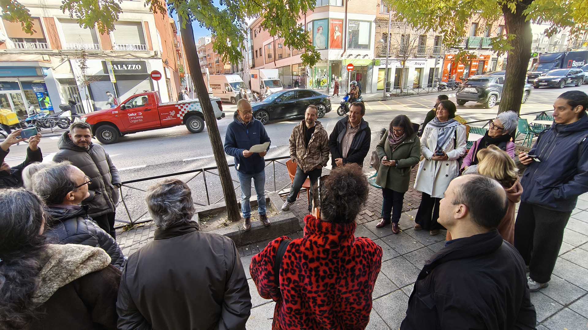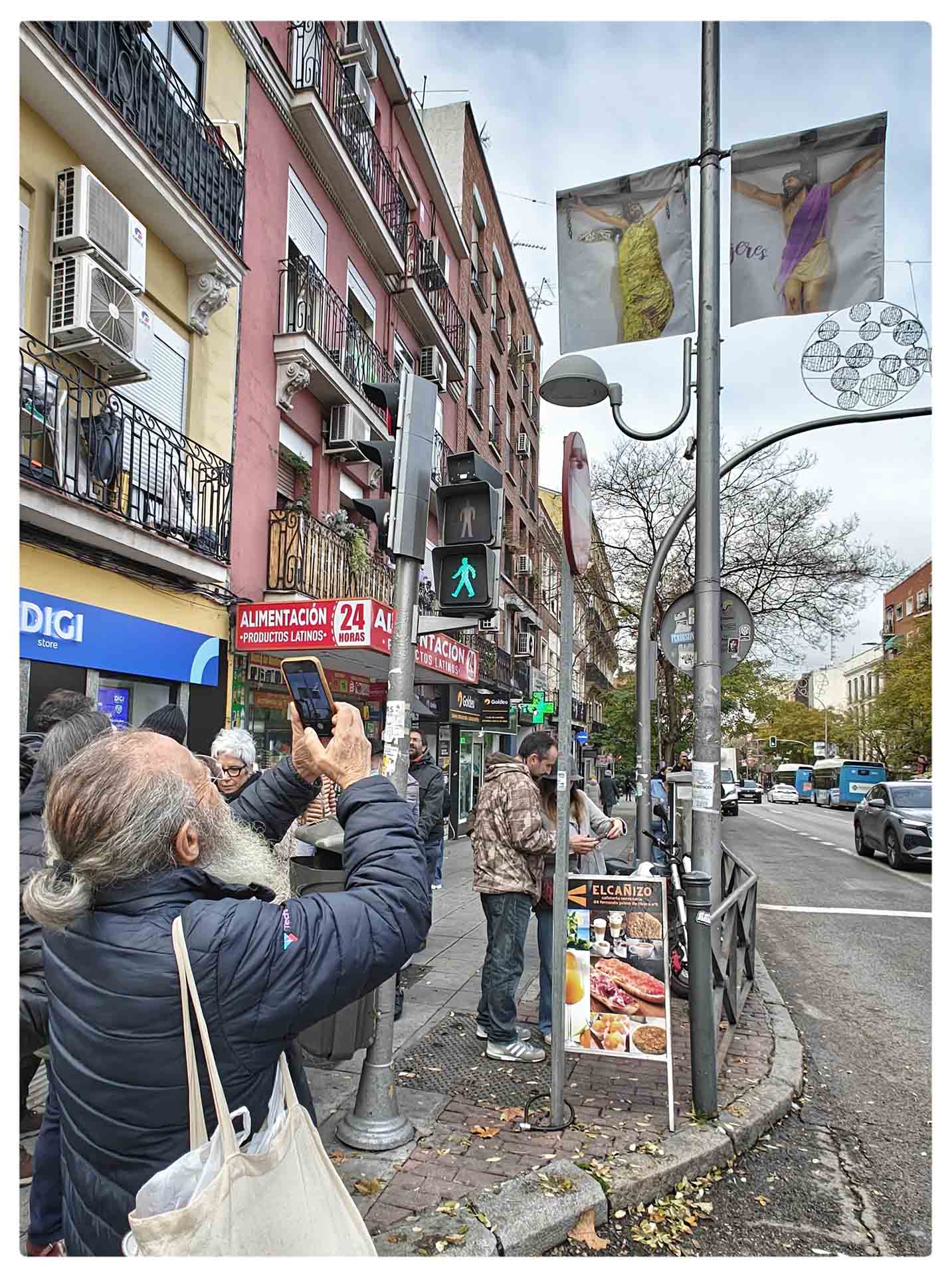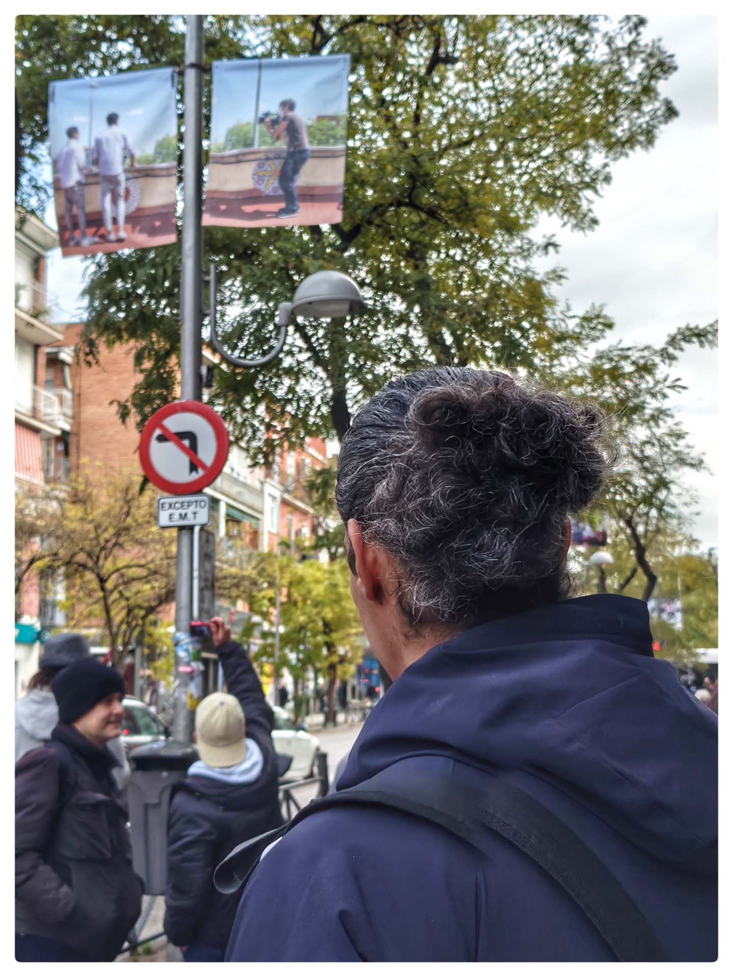 La muestra reúne 60 fotografías tomadas por Baeza a lo largo de estos ocho años, colgadas en 30 farolas de la Avenida de la Albufera, transformando una de las arterias principales del barrio en una galería urbana. Son instantes capturados desde una cercanía radical: la de quien acompaña, escucha, cuida y camina junto a las vecinas y vecinos del barrio.