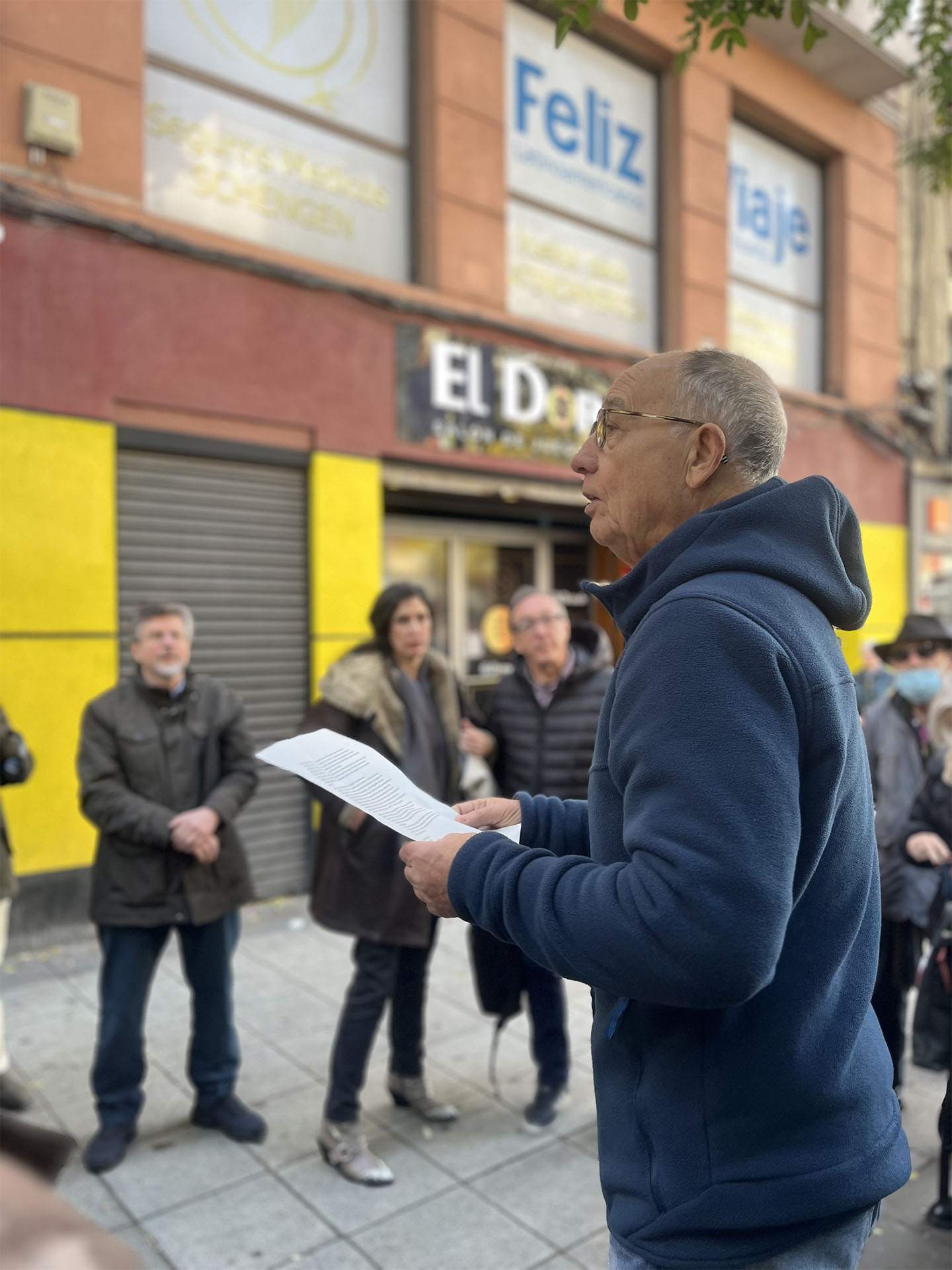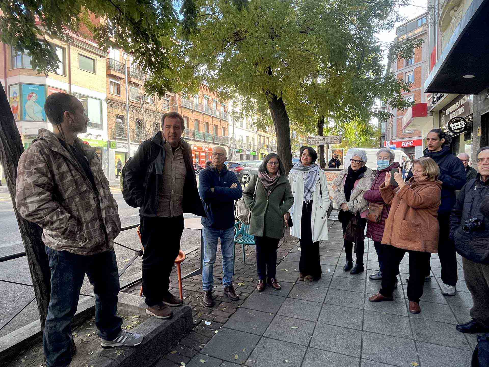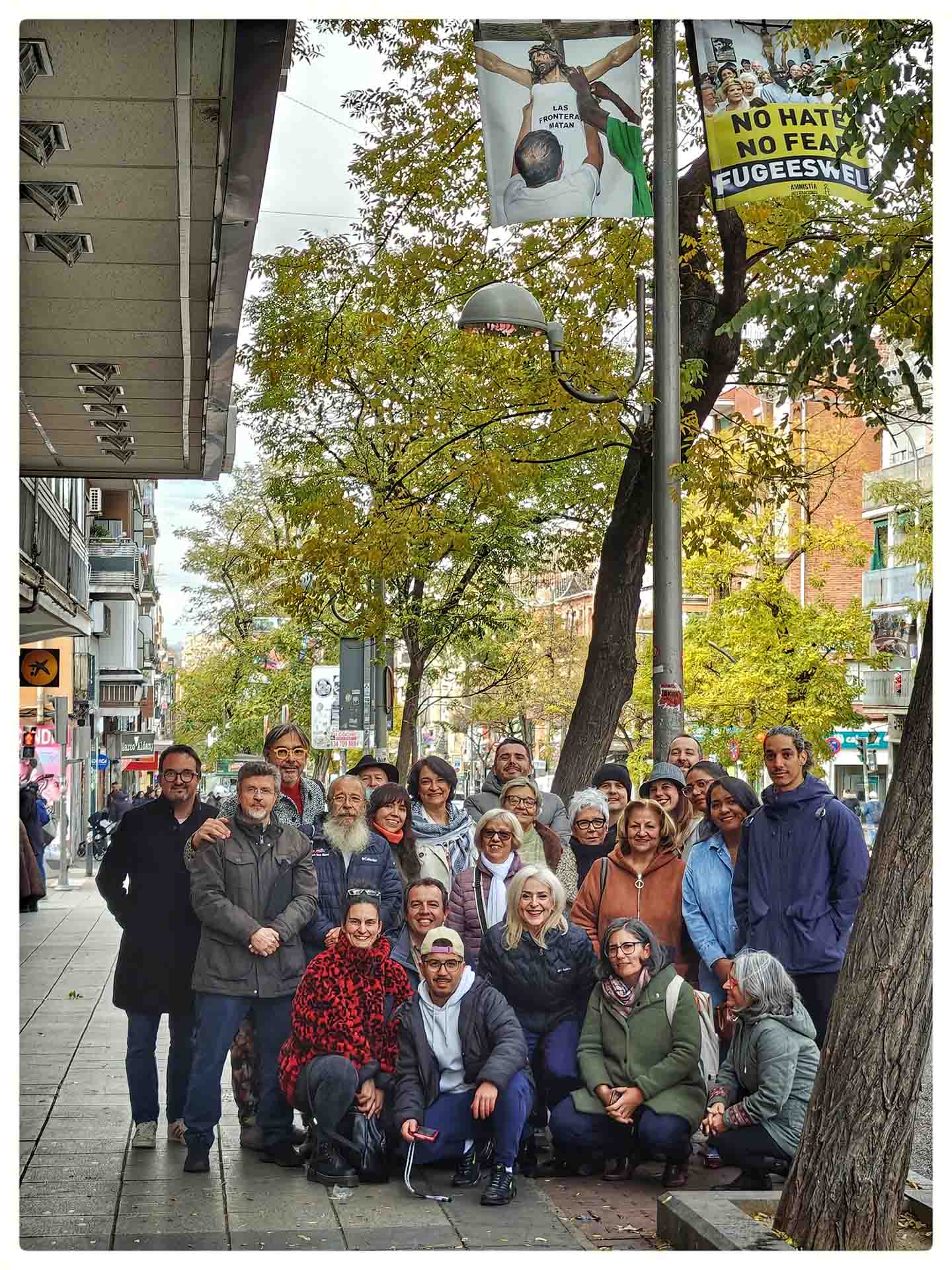 La muestra reúne 60 fotografías tomadas por Baeza a lo largo de estos ocho años, colgadas en 30 farolas de la Avenida de la Albufera, transformando una de las arterias principales del barrio en una galería urbana. Son instantes capturados desde una cercanía radical: la de quien acompaña, escucha, cuida y camina junto a las vecinas y vecinos del barrio.